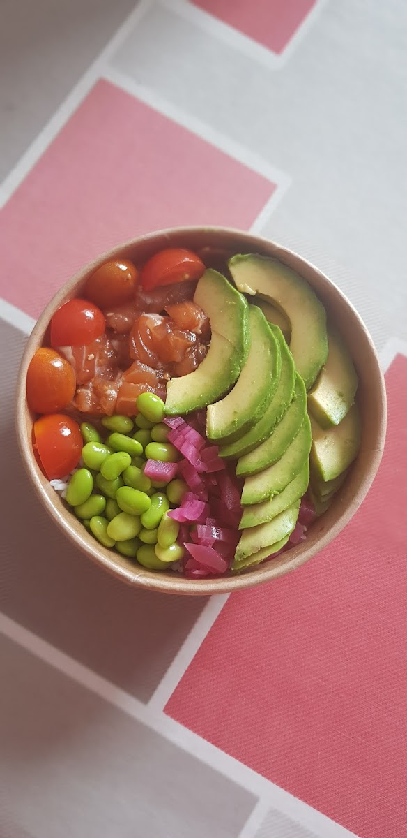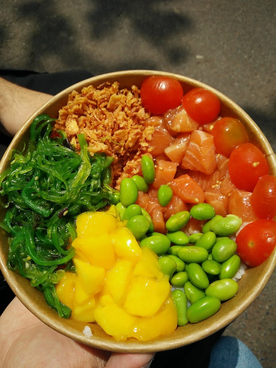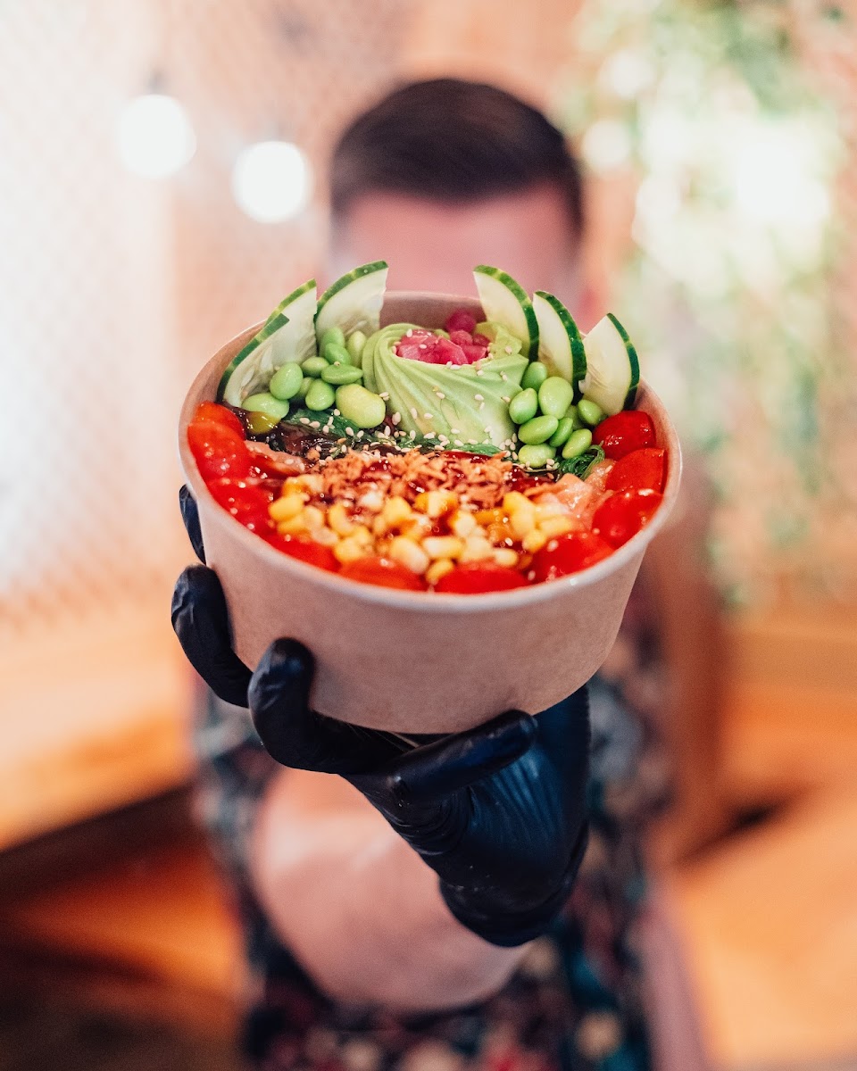 The menu focuses on colorful Hawaiian-inspired bowls that are both satisfying and easy to customize. One of the most popular choices is the Poke Bowl of Rice, which delivers a balanced mix of textures and fresh ingredients in every bite. The rice base provides a comforting foundation, while the toppings bring bright flavors that make the dish feel light yet filling. It’s the kind of bowl that works perfectly for lunch when you want something tasty without feeling heavy afterward.